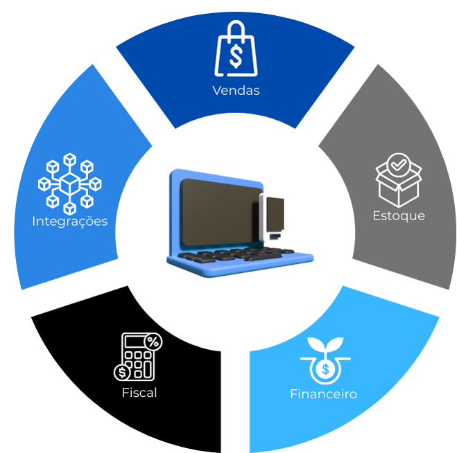 Todas as áreas da sua loja, integradas em uma só ferramenta de gestão.